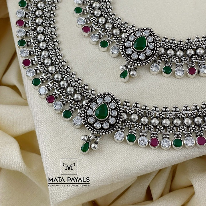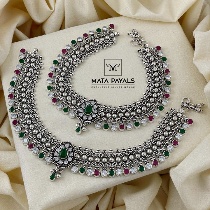 Bride Cut Stone Oxidised Anklet