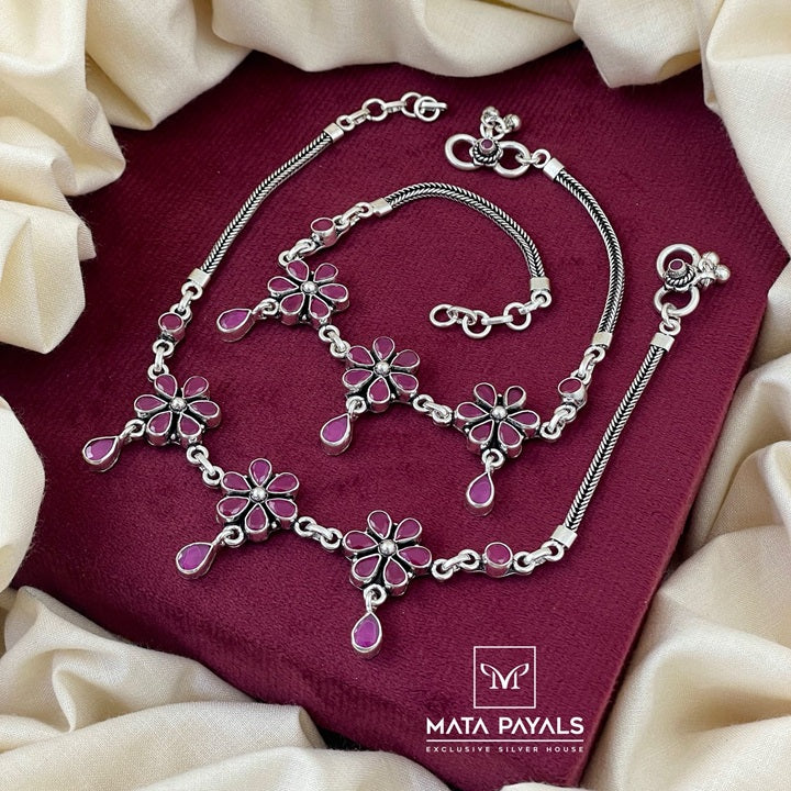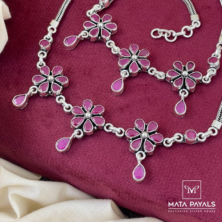 Dark Pink Oxidised Anklet