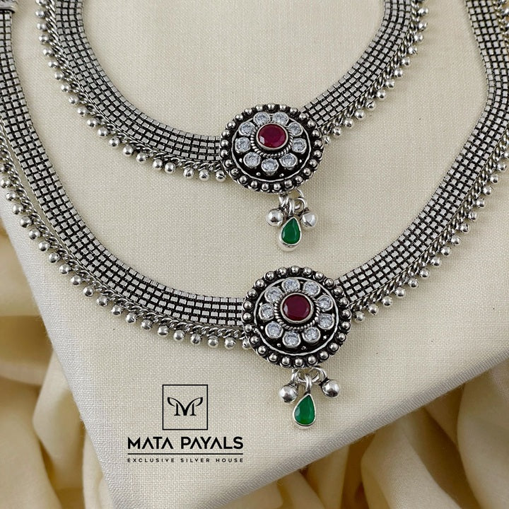 Excellent Oxidised Cut Stone Anklet
