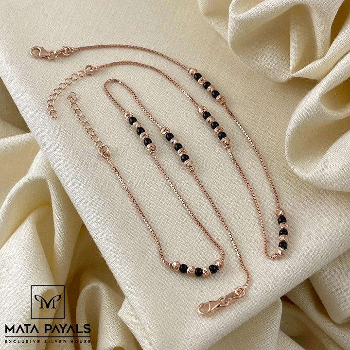 Rose Gold Black Beads Anklet