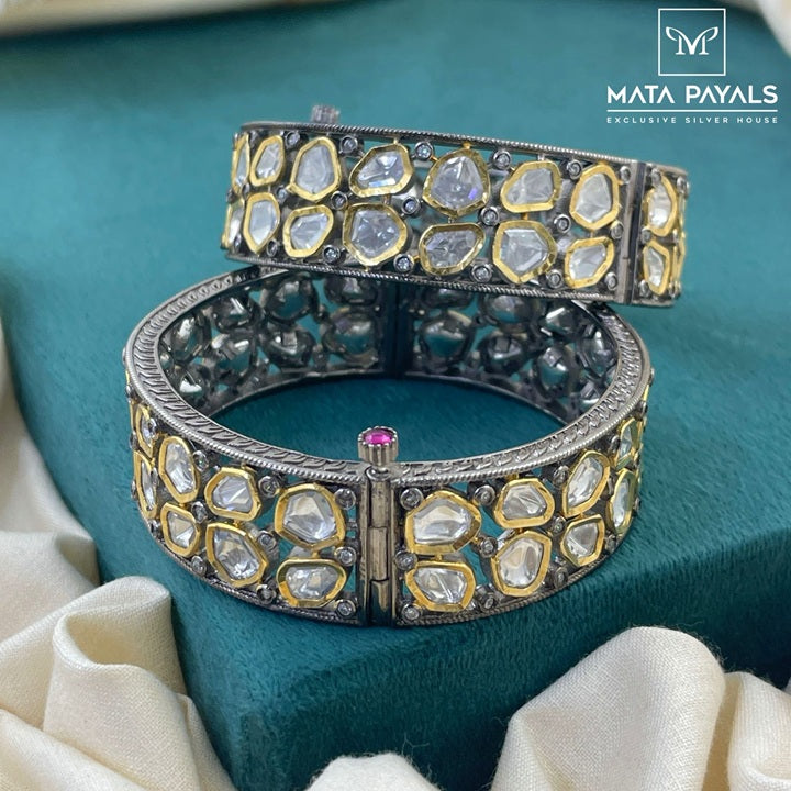 At Mata Payals, we take pride in offering a variety of styles — from plain silver bangles to silver bangles with gold polish — so you can find the one that resonates with your look. Each design is crafted to be openable, making it practical for daily use while maintaining its elegance.