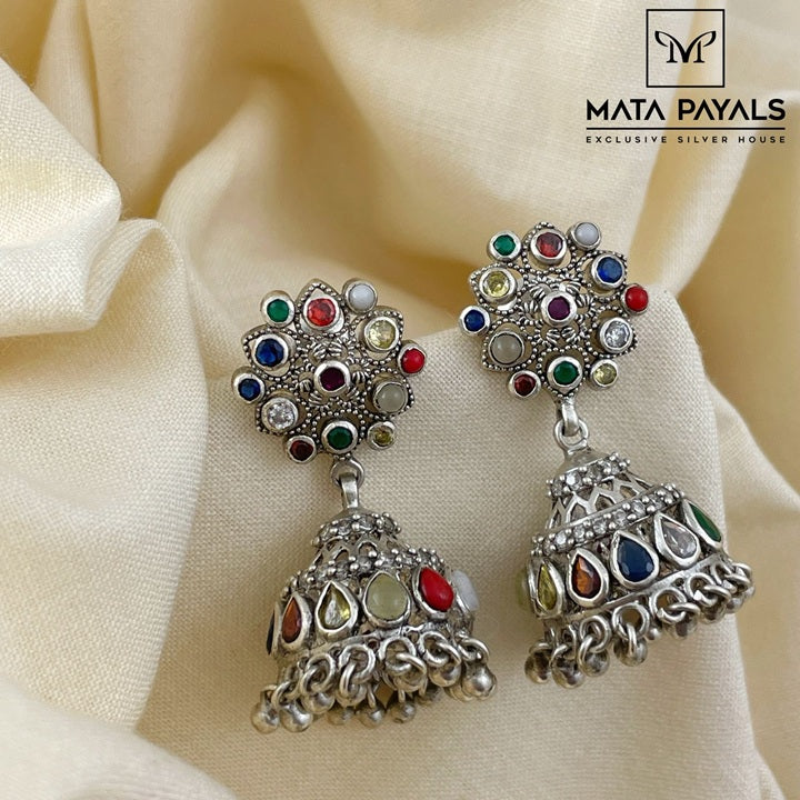 Oxidised Navarathna Jumka