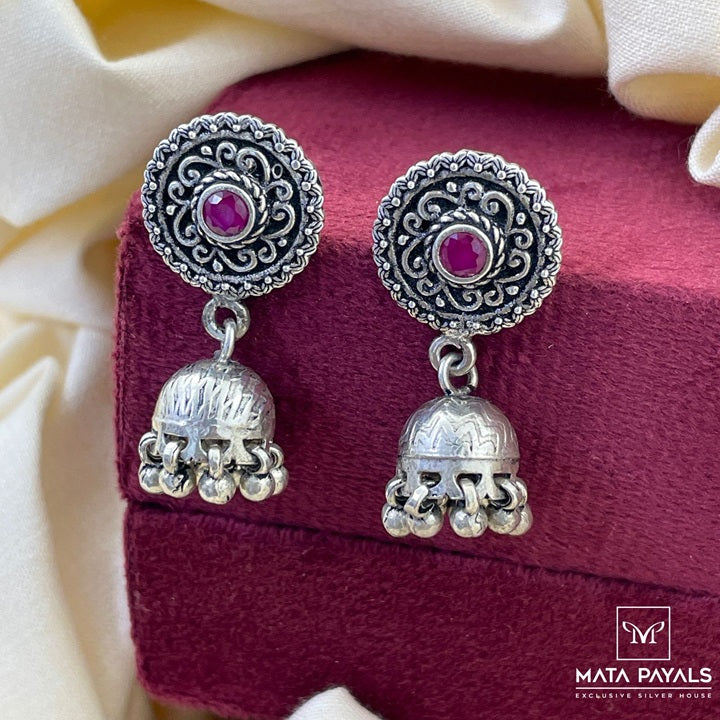 Beautiful Floret Silver Oxidised Jhumka