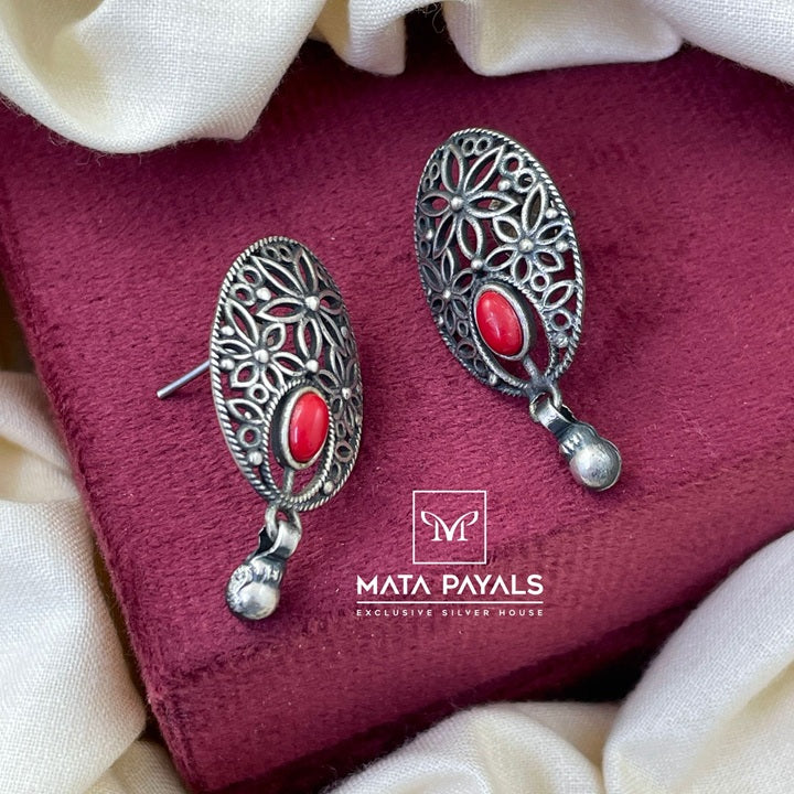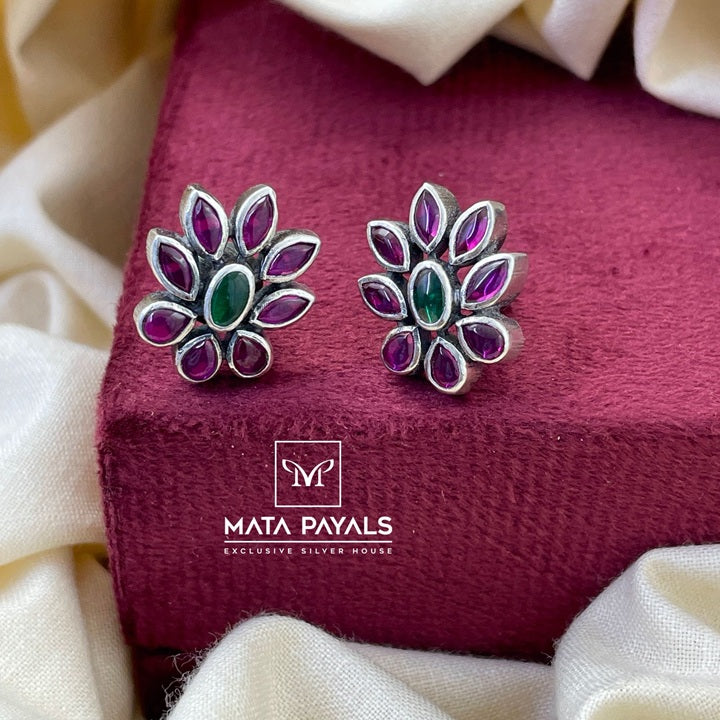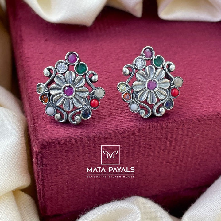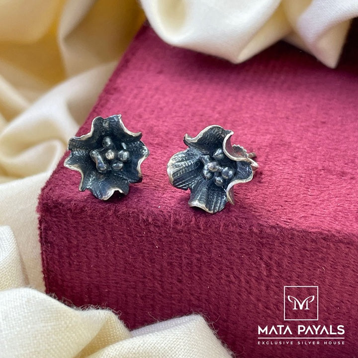 Floral Oxidised Stud