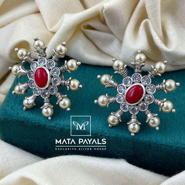Popular Coral Oxidised Stud