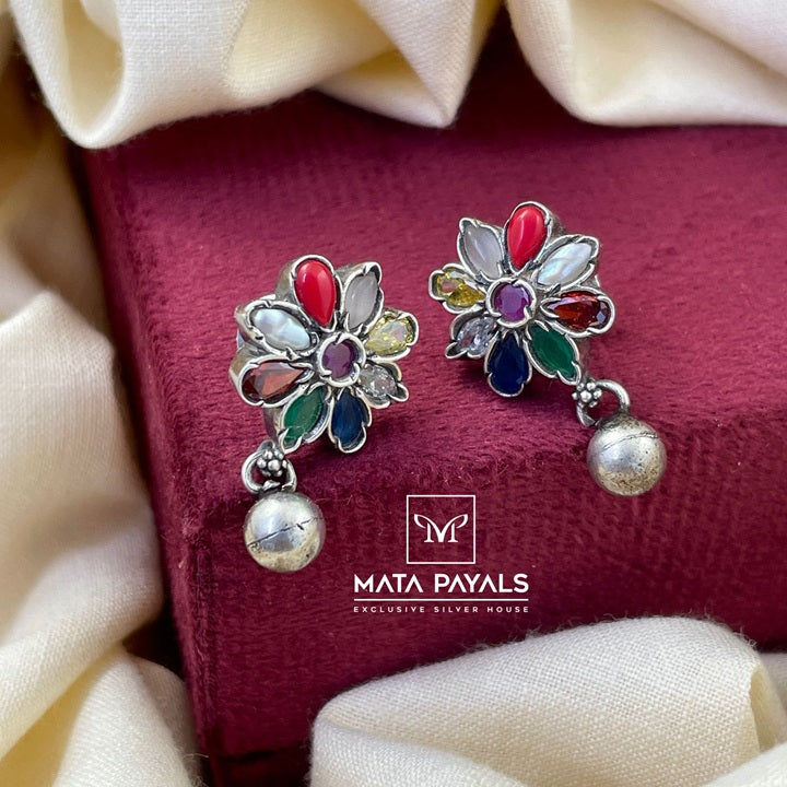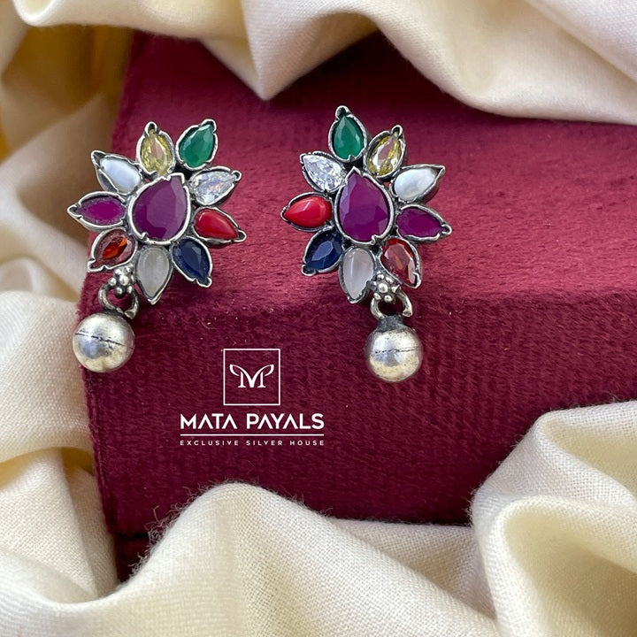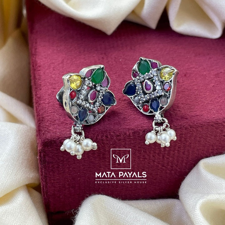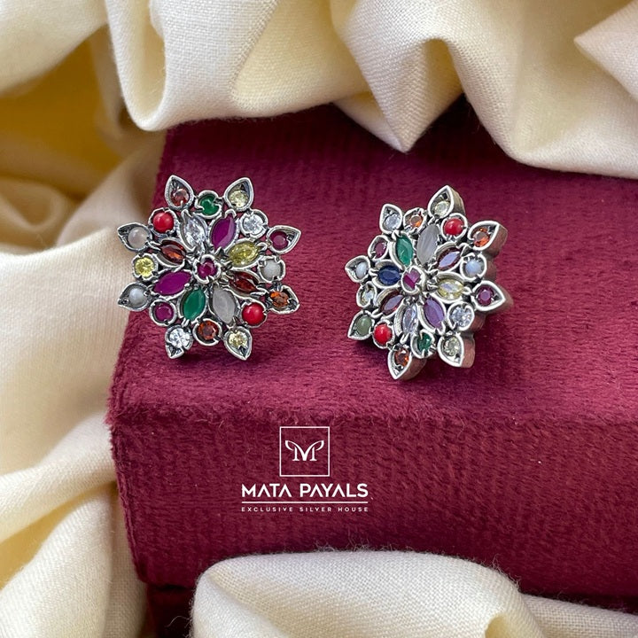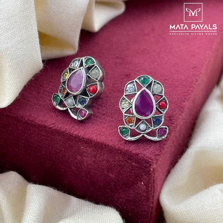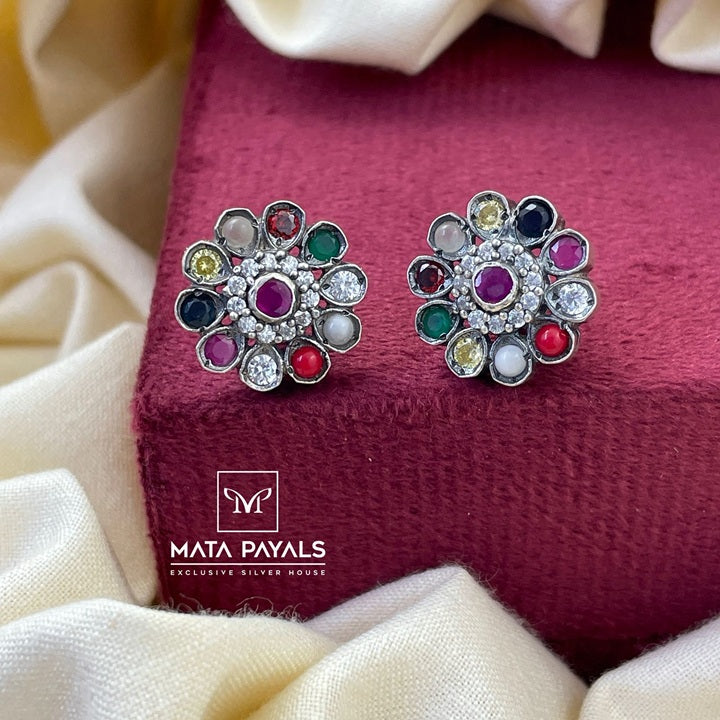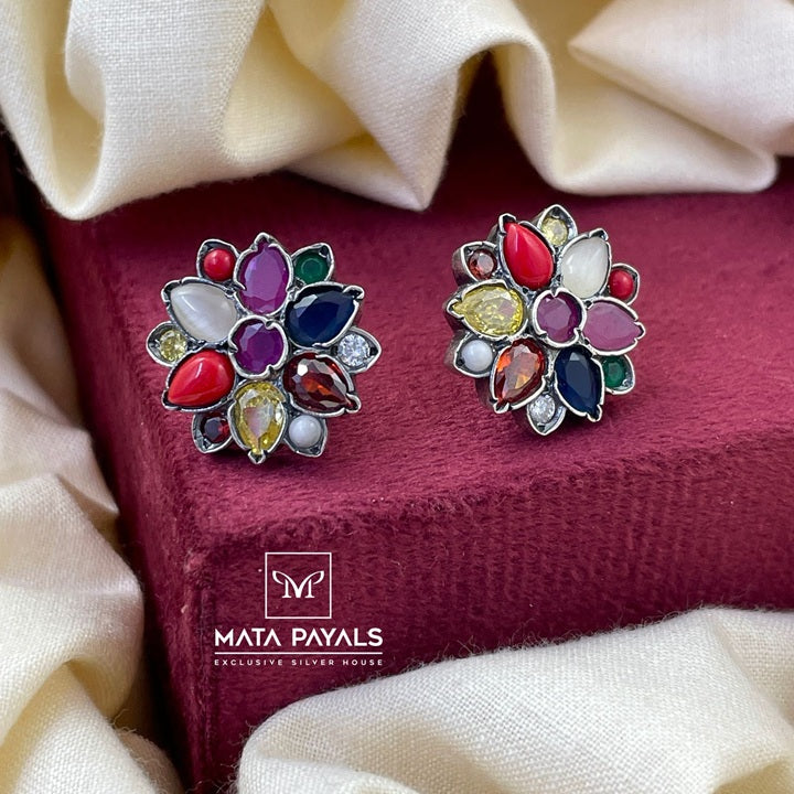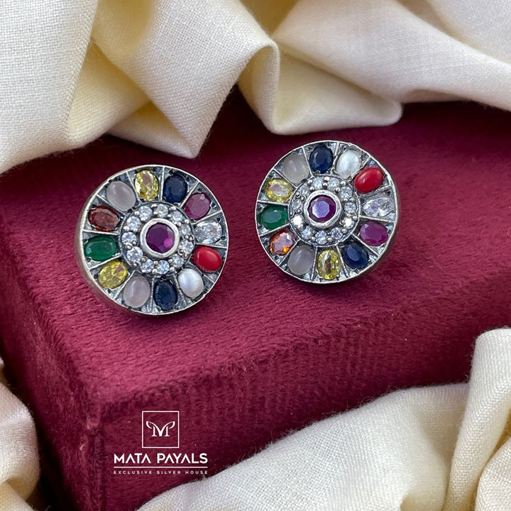Pretty Navarathna Oxidised Stud