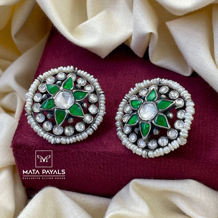 Green Kundan Stud