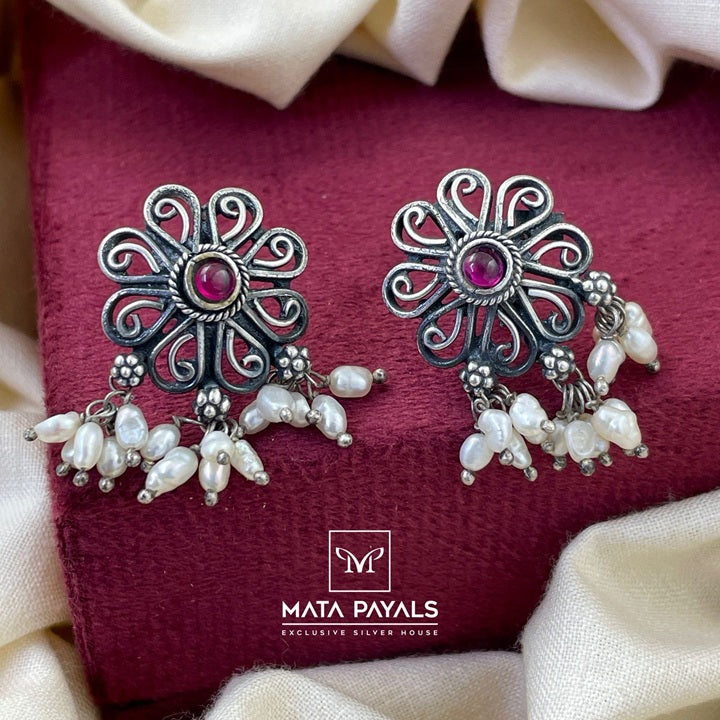 Floral Oxidised Stud
