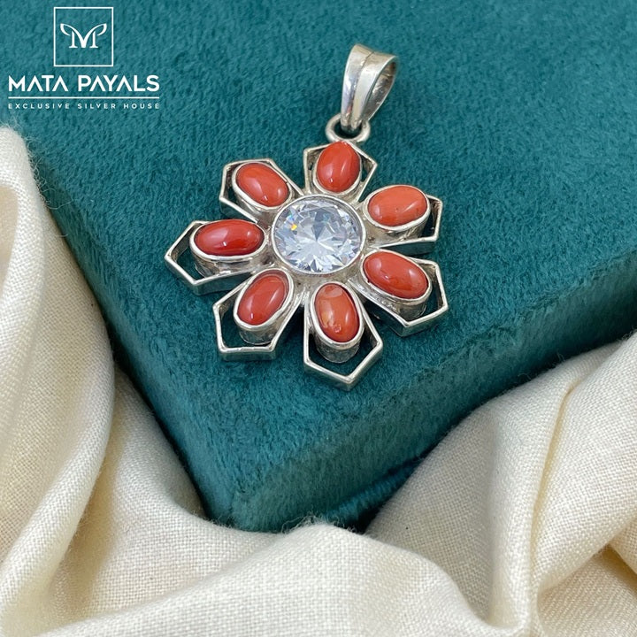 Radiant Floral Designed Silver Pendant