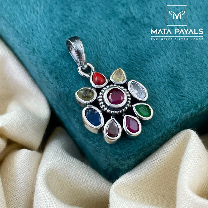 Tiny Navratna Oxidised Pendant