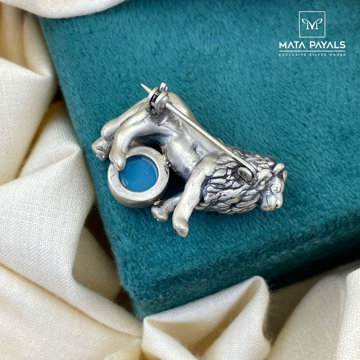 Oxidised Lion Brooch
