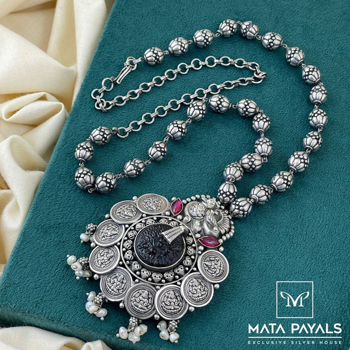 Divine Shri Lakshmi Kasu Beaded Oxidised Necklace