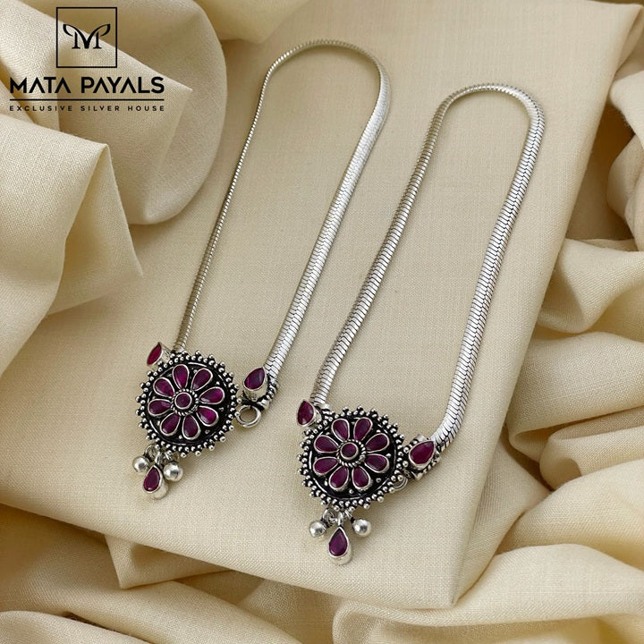 Elegant Dark Pink Floral Anklet