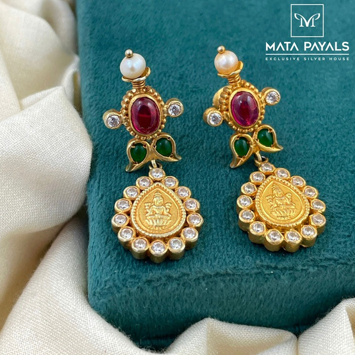 Holy Shri Lakshmi Silver Gold Plated Earing