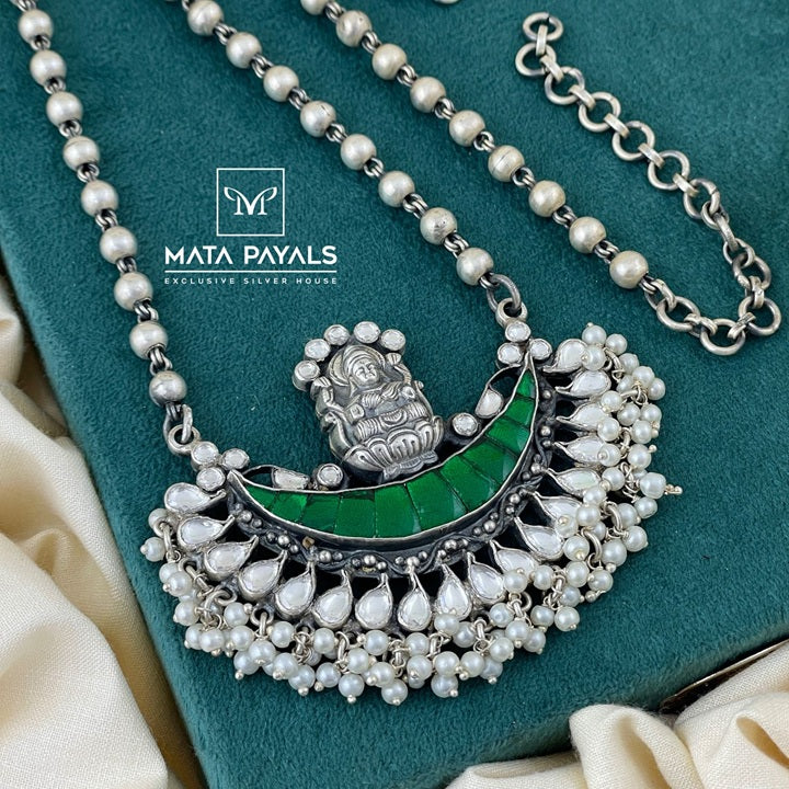 Majestic Devi Lakshmi Oxidised Kundan Hara
