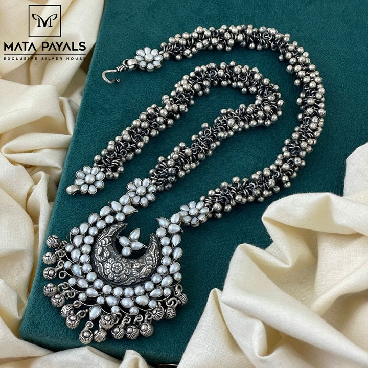 Conspicuous Maa Lakshmi Carved Silver Beaded Necklace