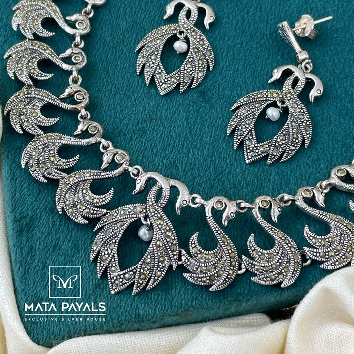 Attractive Marcasite Duck Silver Oxidised Necklace Set