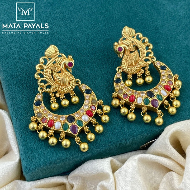 Beautiful Mayuri Navratan Gold Plated Chandbali