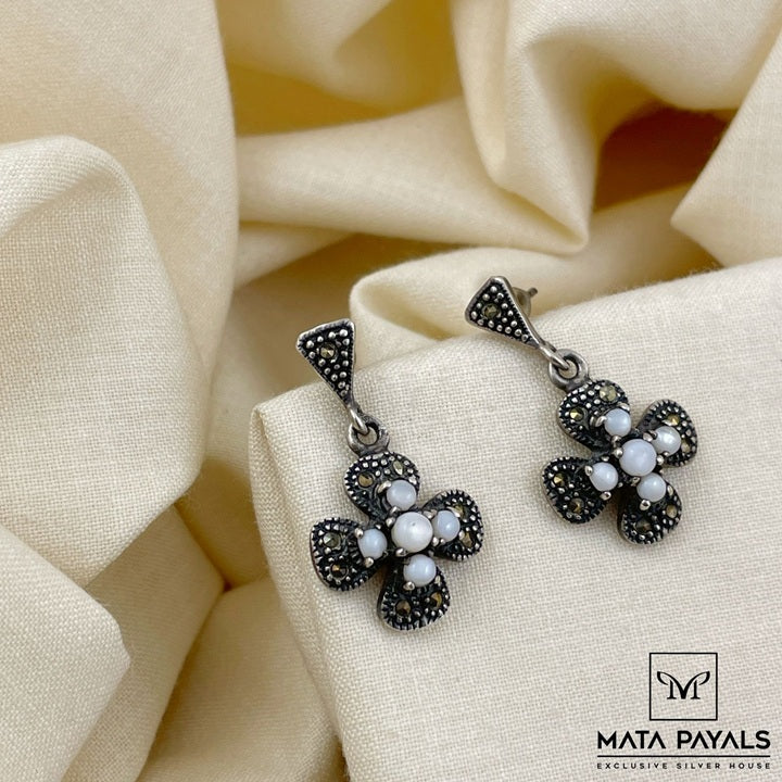 Blossomy Marcasite Pearl Earring